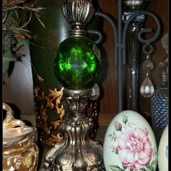 VINTAGE ORNATE FOOTED FOREST GREEN CRYSTAL BRASS METAL CANDLESTICK CANDLE HOLDER CANDELABRA DECOR DISPLAY $25San Tan Valley, AZ