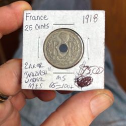 France Franc No Dash Variation 25 Cents 1918 Valuable Variation Due No Having A Dash Under The MES On The Reverse . Ms Status Mint Uncerculated ?$56Phoenix, AZ