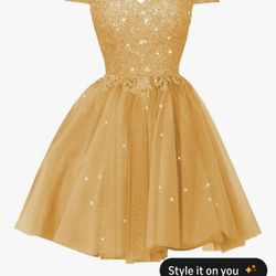 Elegant women junior off the shoulder dress in gold size 3-4 it’s available as long as you can see it. Worn for couple hours https://offerup.co$120Chandler, AZ