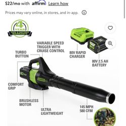 GREENWORKS PRO PRO 130 MPH 610 CFM 60V Battery Cordless Handheld Leaf Blower (Tool-Only)$158Phoenix, AZ
