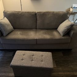 Gray Fabric Loveseat With Pillows And Ottoman$250Mesa, AZ
