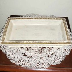 VINTAGE SHABBY CHIC CREAM WHITE CRYSTAL RHINESTONE BLING VANITY TABLE MAKEUP PERFUME TRAY DECOR$20San Tan Valley, AZ