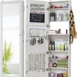 GISSAR Jewelry Mirror Armoire Wall Mount Over The Door Mirror Jewelry Cabinet Storage Mirror Organizer Lockable Full Length Door Mirror(White Oak)$10Chandler, AZ