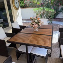 11-Piece Outdoor Patio PE Wicker Dining Table Set, All-Weather Resistant Conversation Set with Acacia Wood Tabletop, Foldable Back Dining Chair, Space$450Scottsdale, AZ