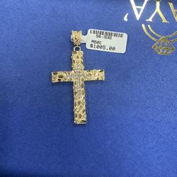 14K Gold Nugget Cross Pendant W/ Cubic Zirconia $1,005Phoenix, AZ