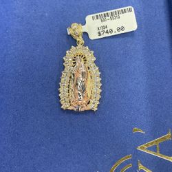 10K Tri Color Gold Cubic Zirconia Virgin Mary Pendant $740Phoenix, AZ