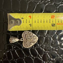 Vintage Sterling Puffy Heart Pendant Necklace Diamond Cut Filigree 925 $50Mesa, AZ