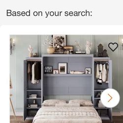 Antique Gray Wood Frame Queen Size Murphy Bed with Top Storage Shelves, 3 Drawers, Wardrove$750Mesa, AZ