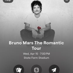 2 Bruno Mars Tickets For April 15. Section 133. Row 20, Seats 3-4.$900Glendale, AZ