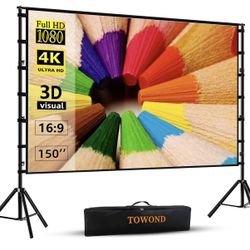 TOWOND Projector Screen and Stand, 150 inch Indoor Outdoor Projection Screen, Portable 16:9 4K HD Rear Front Movie Screen with Carry Bag Wrinkle-Free $75Scottsdale, AZ