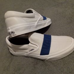 Vans Classic Slip On Leather Webbing M/7 W/8.5 White&Blue$20Phoenix, AZ