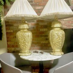 Gorgeous Pair of Vintage Extra Large 42” Antique Gold Plaster Chinese Fu Dog Lion Lamps$180Phoenix, AZ