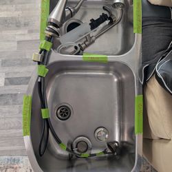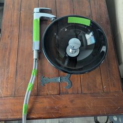 Modern Kräus chrome faucet and black glass vessel sink set. Faucet has a shiny chrome finish. Sink is a cool black glass. Also includes the drain ass$95Sun City, AZ