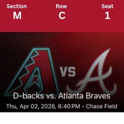 Arizona Diamondbacks vs Atlanta Braves 4/4 2 Tickets For $150$150Buckeye, AZ