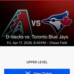 D-backs vs Blue Jays Tickets - April 17, 2026 (2 Tickets)$50Sun City, AZ