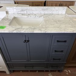 Merryfield 37 in. Single Sink Dark Blue-Grey Bath Vanity with White Carrara Marble Top$550Peoria, AZ