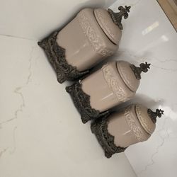 Three Hampton bay outdoor porch chairs heavy wrought iron bistro rocking wooden$25Glendale, AZ