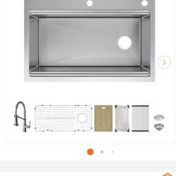 Glacier Bay Dolancourt Tight Radius 33 in. Drop-In Single Bowl 18G Stainless Steel Workstation Kitchen Sink with Spring Neck Faucet$250Phoenix, AZ