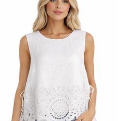 New w tags: Future Collective Women’s Embroidered Eyelet Side-Tie Tank Top Off-White Boho$20Peoria, AZ