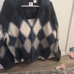 Mens Levi's Blue Argyle Button Up Sweater, Unused. $50Phoenix, AZ