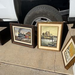Please Read Description - Vintage Signed 4 Panel Asian Wood Hand Painted Abalone Shell Art Pictures$200Goodyear, AZ