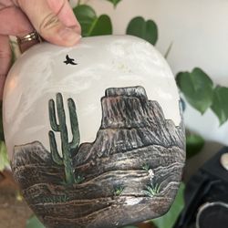 Vtg Narrow Raised Hand Painted Southwestern Terra Cotta Vase With Cactus Art Clay Pottery$30Buckeye, AZ