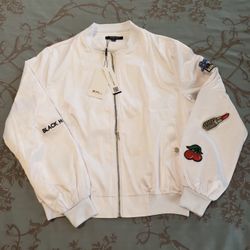 Haoduoyi White Patch Satin Bomber Jacket Women's Size XXL$50Peoria, AZ