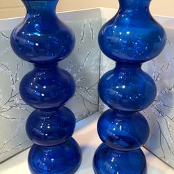 2 Anne Nilsson IKEA Herrang 2012 Blue Glass Candle Holders 14” Height 4”Base Hold A 3” Pillar Candle$88Buckeye, AZ