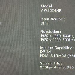 Alienware AW2524HF 500Hz Gaming Monitor Warranty Until 2027$370Buckeye, AZ