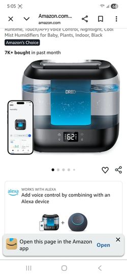 Dreo Smart Humidifiers for Bedroom, Top Fill 4L Supersized Humidifier Large Room with 28 dB, 36H Runtime, Touch/APP/Voice Control, Nightlight, Cool Mi$30Glendale, AZ