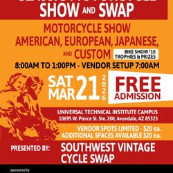 Classic Motorcycle Swap Meet March 21, 2026$20Avondale, AZ