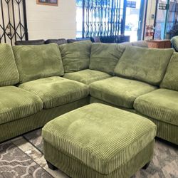 New 99x99 Sage Corduroy Sectional Couch With Ottoman / Free Delivery $850Phoenix, AZ