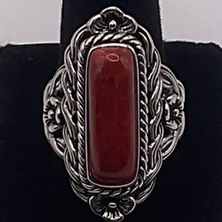 Sterling Silver And Red Coral Cabochon BB Becker Size 8 1/2 Ring$70Sun City, AZ