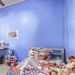 Colorful bunk bed for a kids room. Has top bunk, bottom bed, ladder, desk and a slide. Built-in drawers and shelves for storage. Purple and pink color$600Surprise, AZ