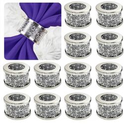 Crystal Glass Napkin Holder Silver Diamond Napkin Rings Pack of 12 Pieces, Glam Crushed Diamond Table Settings Bling Serviette Buckles Cloth Holder$25Phoenix, AZ