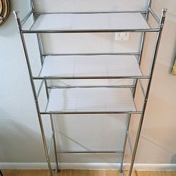 Bathroom Shelves 5ft x 22" x 10" Silver Chrome Metal Shiny Behind Toilet Storage Rubber Feet Removable Plastic Cover $10Phoenix, AZ