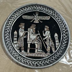 Vintage Persian Ghalamzani copper wall decorative plate Hand engraved Persepolis Faravahar Zoroastrian Scene $19Scottsdale, AZ