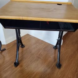This is an antique wooden school desk with a cast iron base. $30Glendale, AZ