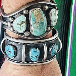 2 Heavy Navajo Sterling Coin Silver & Turquoise Cuff Bracelets Old Pawn$650Phoenix, AZ