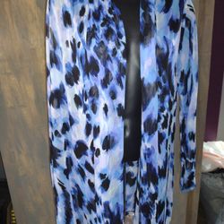 Blue Abstract Animal Print Open Front sheer Duster Cardigan