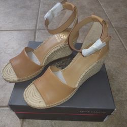 Vince Camuto Leera Tan Leather Wedge Espadrilles Size 10M