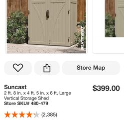 Suncast 2 ft. 8 in. × 4 ft. 5 in. × 6 ft. Large Vertical Storage Shed$280Glendale, AZ