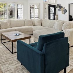 L Shaped Sofa, Teal Chair, Coffee Table, Rug, Checker Side Table And Back Sofa Table $1,000Scottsdale, AZ