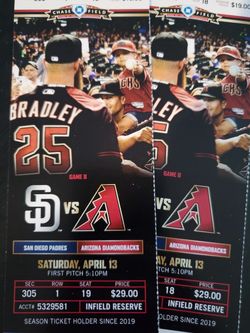 Arizona Diamondbacks tickets$200Chandler, AZ