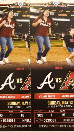 Dbacks vs Braves tickets$55Phoenix, AZ