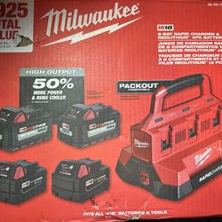 New Milwaukee M18 18-Volt Lithium-lon Battery Pack (2) 5.0Ah and High Output Battery Pack (2) 6.0Ah with PACKOUT 6-Port Rapid Charger$500Mesa, AZ