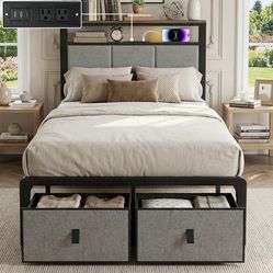 Upholstered Twin Bed Frame with 2-Tier Storage Headboard, Metal Platform Bed with Charging Station,$80Phoenix, AZ