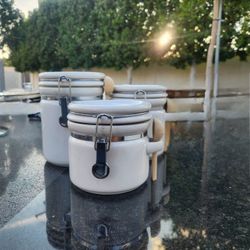 Set of 3 HOME White Ceramic Canisters with Clamp Lid and Wooden Spoon$30Scottsdale, AZ