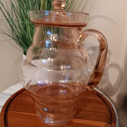 $18 Vintage Pink Depression Glass Pitcher Dunbar Flint. Last picture shows a small chip on lid.$18Gilbert, AZ