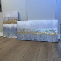 TWO DIFFERENT LARGE Blue/Grey & Silver/Gold Foil/Glitter Textured Canvas Wall Art$80Gilbert, AZ